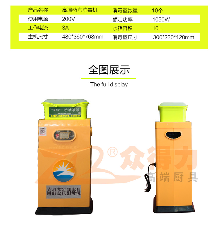 眾得力廚具為您提供主題餐廳流行消毒設備,小黃人蒸汽快速消毒機,菜籃子式消毒機,消毒完畢提提就給客戶了,多種組合,消毒看的到。衛(wèi)生高效!你家餐廳有配嗎?抓緊時間電話聯(lián)系18879770143 0797-8284441訂購!
