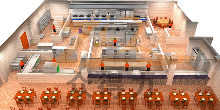 江西眾得力廚具有限公司生產(chǎn)銷(xiāo)售高端廚具,廚房設(shè)備,食品機(jī)械等,承接中央廚房設(shè)備生產(chǎn)、銷(xiāo)售、設(shè)計(jì)、施工、安裝、調(diào)試、培訓(xùn)一站式服務(wù),提供廚房整體3D效果圖,本3D效果圖為政企單位/學(xué)校食堂中央廚房整體效果:涉及的設(shè)備:四層疏條貨架、大炒爐、小炒爐、海鮮蒸柜、蒸飯柜、煲仔爐、湯爐、打荷臺(tái)、儲(chǔ)物柜、組裝式操作臺(tái)、壓面機(jī)、攪拌機(jī)、和面機(jī)、煮面爐、四門(mén)儲(chǔ)物柜、保溫售飯臺(tái)、全自動(dòng)洗碗機(jī)、餐車(chē)、收碗車(chē)、收殘車(chē)、洗手池、雙溫冰柜、油煙凈化設(shè)備,排煙管道等系列商用廚具和食品機(jī)械設(shè)備。