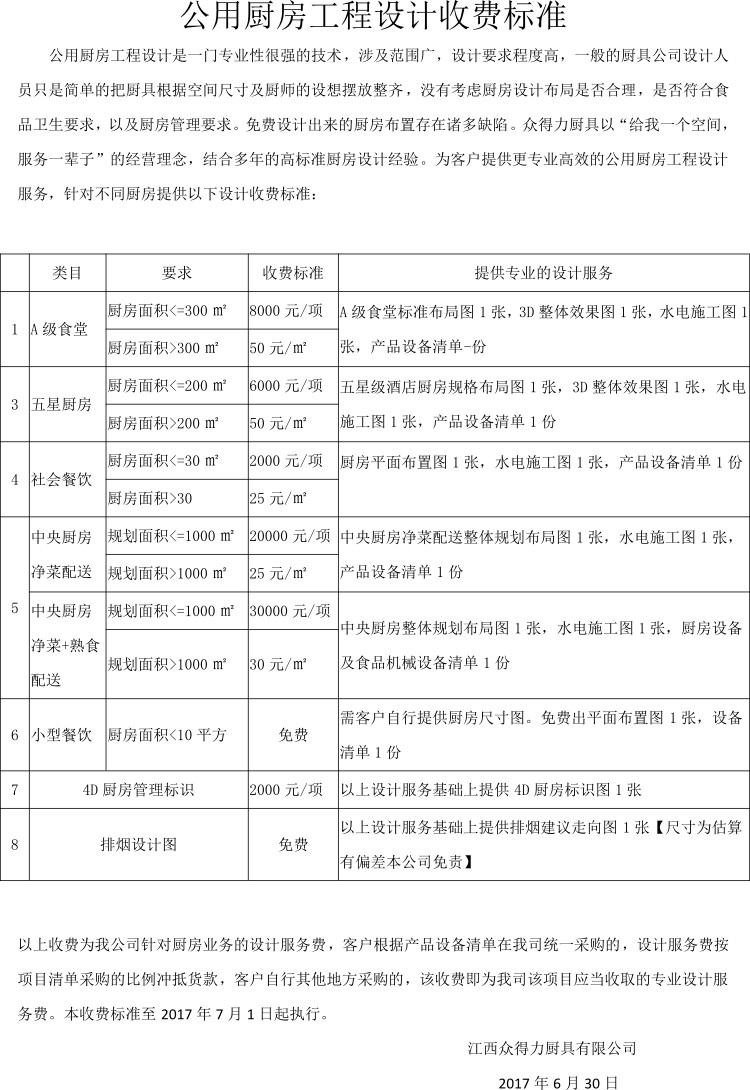 公用廚房工程設(shè)計(jì)收費(fèi)標(biāo)準(zhǔn)